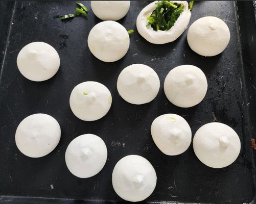 伝統的な手作りの韭菜盒子に使用されるものと同様の、よく発達した弾力性のある小麦ベースの生地が最適です。ホッパーを通して破れることなく供給できる程度の硬さが必要です。
