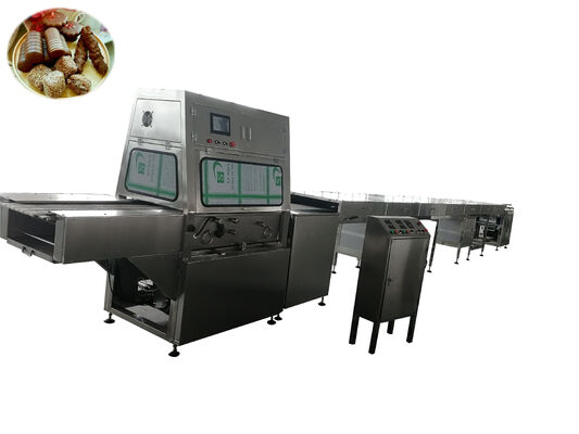 The temperature control system is accurate and stable, with variation kept within ±1°C, making it suitable for dark chocolate, milk chocolate, and functional coating materials. The independently adjustable conveyor height and speed accommodate products of different thicknesses and hardness levels, with a maximum single-line output of up to 2 tons per day.