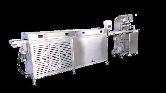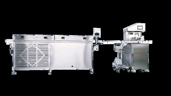 統合された冷却トンネルは効率の鍵です。制御された連続的な冷却環境を提供し、テンパリングされたチョコレート製品を数分で完全に固めることができます。これにより、生産が合理化され、個別のテンパリングおよびセッティングステーションが不要になり、小さな設置面積で出力を最大化できます。