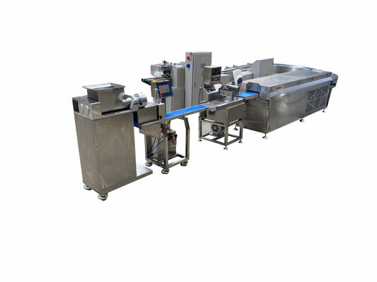 食品メーカー向けに特別設計されたこの完全自動チョコレートココナッツバウンティバー生産ラインは、充填注入、成形、コーティング、冷却の4つの主要プロセスを統合しています。1日の生産能力は2〜5トンで、標準化された大規模製造を可能にします。
